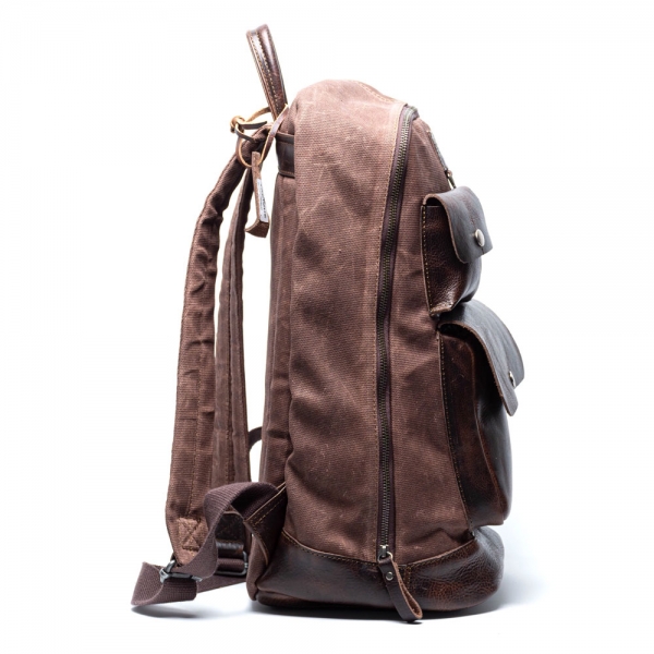 Canvas acabado vintage, colores negro, ladrillo, caqui, olivo y gris oxford. Piel 100% Bovino. Forro 100% algodón. Herraje Metálico reforzado y cierre ykk.